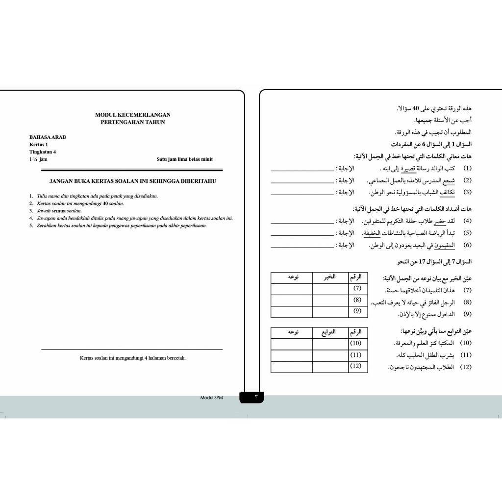 5 Set Modul Bahasa Arab SPM Kertas 1 Kertas 2 Skema Jawapan. Bank Soalan SPM Bahasa Arab adalah antara himpunan soalan-soalan yang berjaya kami sediakan untuk menjadi panduan dan rujukan kepada guru ibubapa dan pelajar. Calon wajib menduduki semua kertas peperiksaan bagi mata pelajaran yang didaftar.